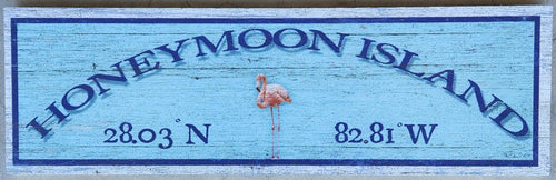 NEW Sign - Honeymoon Island w/Flamingo Latitude/Longitude - M