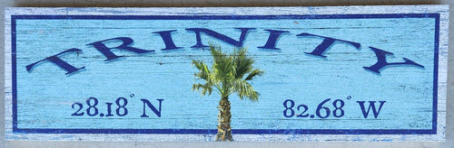 NEW Sign - Trinity w/Palm Tree Latitude/Longitude - M