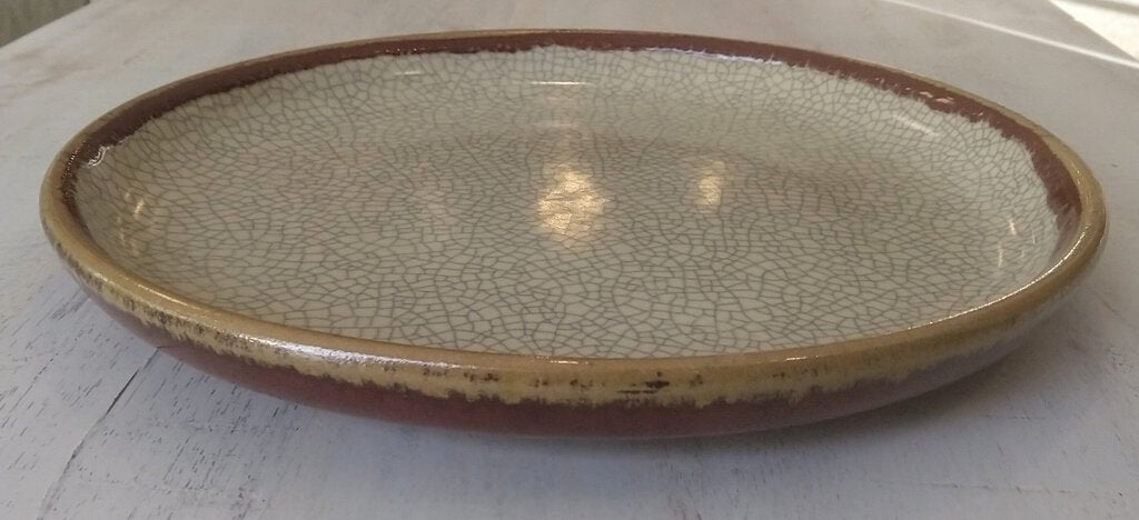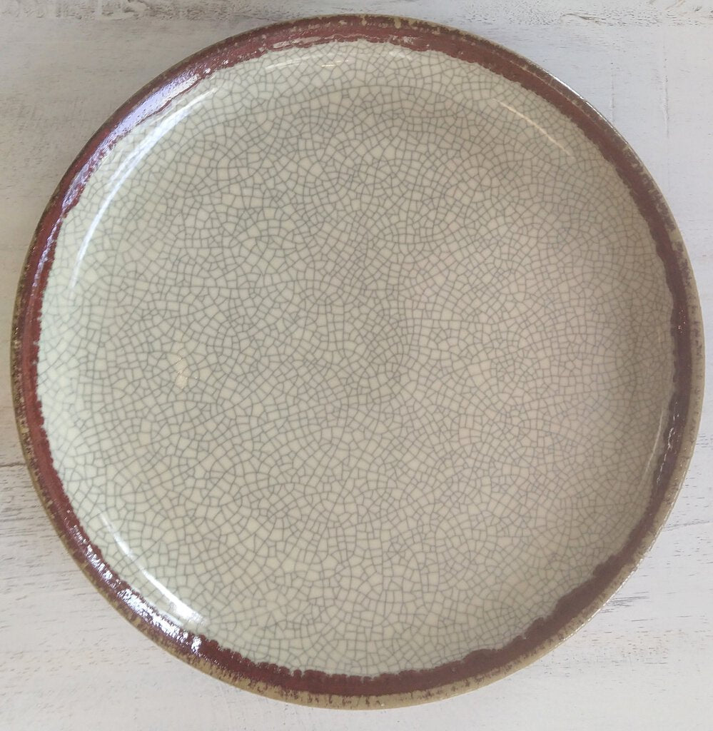 Approximately 12 5/8" diameter. Crackle and drip glaze edges vary slightly by design.