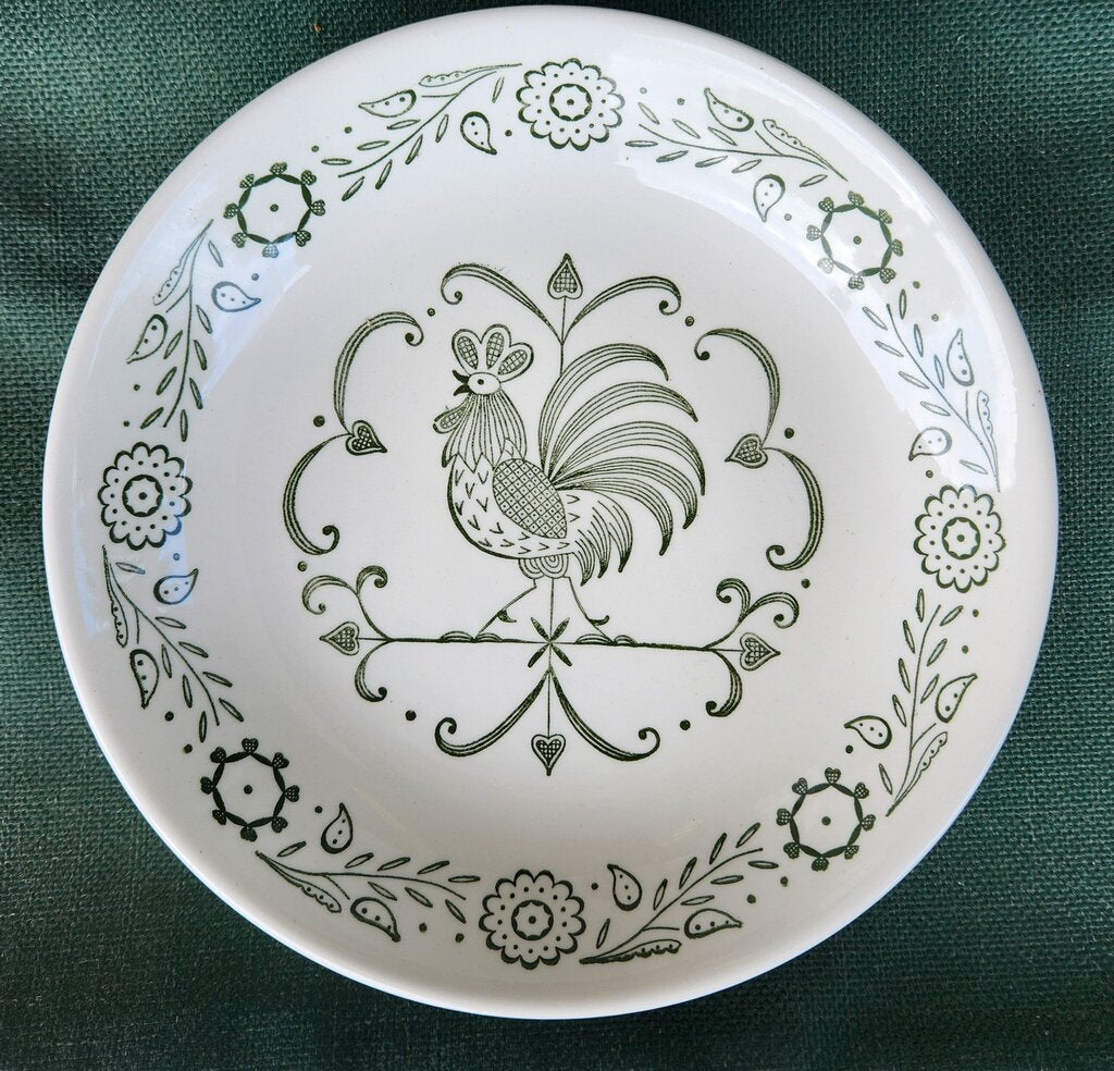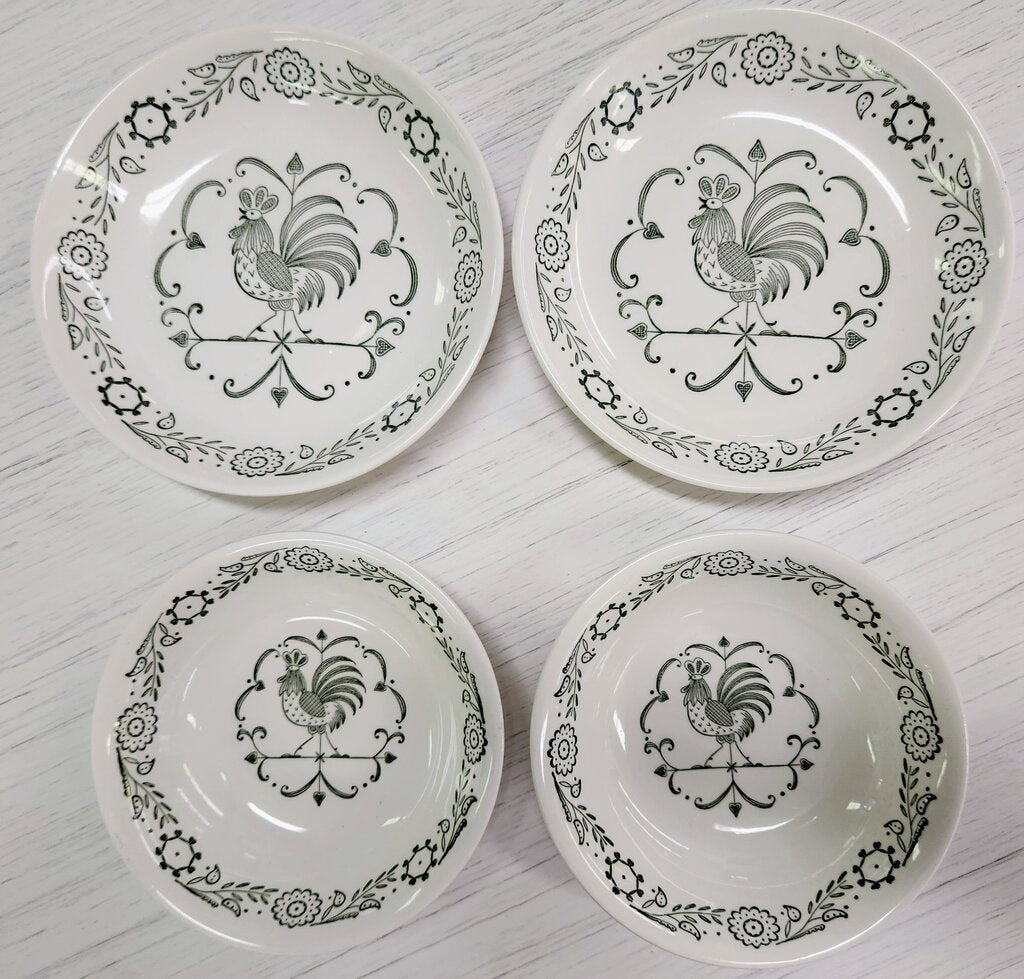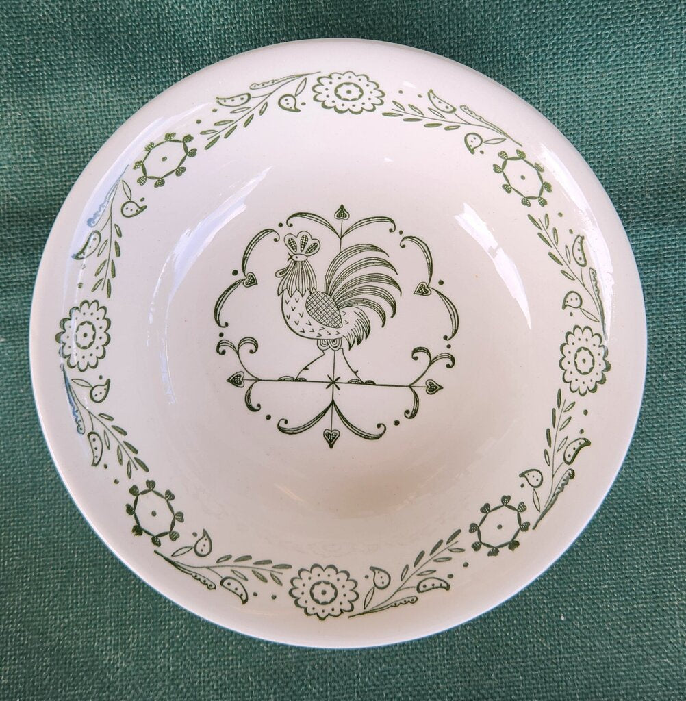 SET 4-Pc Vintage Scio Pottery Provincial Green Rooster Bowls